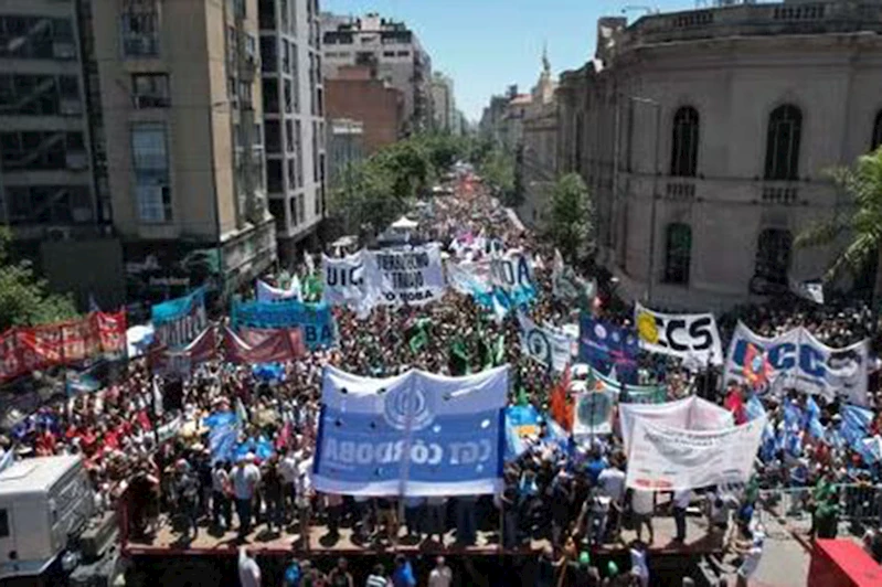 Protestolar, Başkan Javier Milei’nin kemer sıkma politikaları nedeniyle eğitim ve sağlık sektörlerinde yaşanan kesintilere tepki olarak düzenleniyor.