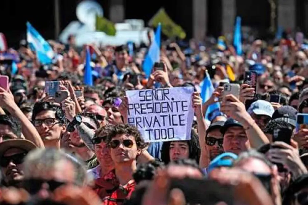 Protestocular gösteride, Arjantin bayraklarının yanı sıra “ülkemiz satılık değil”, “kuvvetler ayrılığına saygı gösterilsin” yazan pankartlar taşıdı.