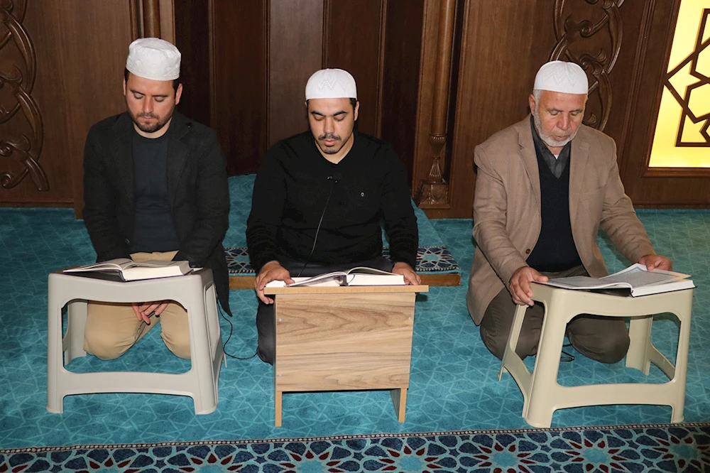 Gaziantep'te bulunan Perihan Kıymık camisinde imamlar ve hafızlar Kur'an-ı Kerim'i sesli olarak okurken, mukabeleye katılanlar ise okunan ayetleri takip ediyor. Kur'an-ı Kerim'i okumasını bilenler okunan ayetleri yüzünden takip ederken, okumasını bilmeyenler ise huşu içinde dinliyor.