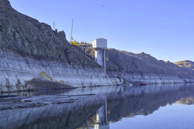 “Çamlıdere Barajı'nda yaklaşık 400-500 milyon metreküp su olduğunda bunun yüzde 20’si hatta daha fazlası da bu ölü hacim dediğimiz, aslında su alma yapısının altında kalan kısım. Burada herhangi bir sorun yok. Sadece suyu kendi cazibesiyle kanala aktaramıyoruz. Onu aktarabilmek için de bir sistem kurulması gerekiyor. Bu sistemde bu sol tarafımda gördüğümüz yüzer platformlar vasıtasıyla dikey milli pompalarla suyu alttan alıyoruz ve yukarıdaki su alma yapısının içerisine boşaltıyoruz. Oradan da tünele girip Ankara'ya su geliyor. Burada yaklaşık olarak dediğim gibi 110 milyon metreküp civarında bir rezerv var. Bu rezerv Ankara için önemli bir rezerv. Özellikle kurak dönemlerde başvurulan rezervlerden bir tanesi.”