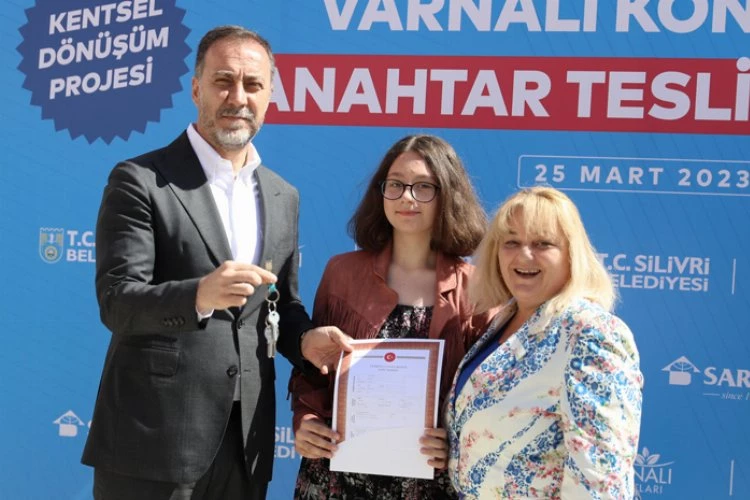 Silivri Belediyesi ve Saral İnşaat iş birliğiyle kentsel dönüşüm süreci tamamlanan Varnalı Konutları için anahtar ve tapu teslim töreni düzenlendi.