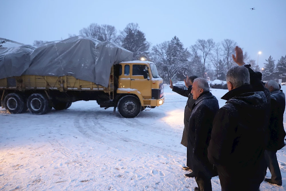 Deprem bölgesine doğru harekete geçen araçlarda; 3 bin 500 adet battaniye, 2000 adet ayakkabı, 1950 adet çocuk montu, 1175 adet yetişkin montu, 3150 adet çocuk bezi, 3500 adet ıslak bez, 2000 adet çocuk maması, 1856 adet eldiven, 1625 adet şapka-bere, 300 adet atkı, 2000 adet temizlik malzemesi, 50 adet elektrikli ısıtıcı, 5 adet çadır, 30 bin su, 250 koli dezenfektan, 500 koli gıda malzemesi, 20 bin ekmek, 20 çuval patates ve baklagil malzemesi yer aldı.