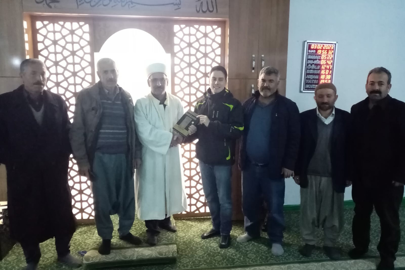 Ailece Nemrut Dağı Milli Parkını ziyaret etmek için gelen FransızBastien Tardivel, eşi Annaelle Le Gall ve çocukları Tıana Tardivel Le Gall ile birlikte Yenigüven köyünde mola verdikleri sırada cami imamı Bedir Tekin ile tanıştılar.