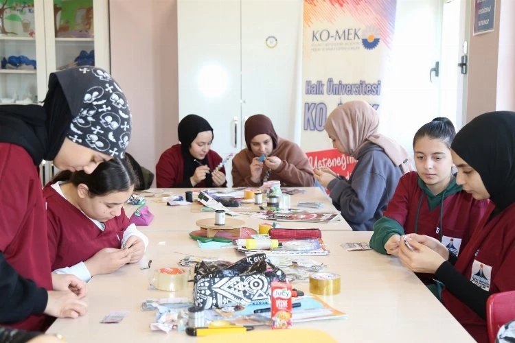 Kocaeli’de eğitim alanında bir marka olan KO-MEK, öğrencilere atık kâğıt ve ambalajlardan aksesuar yapımını öğretti.