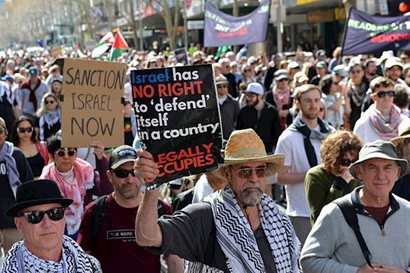 Avustralya’nın Melbourne kentinde, işgalcilerin Gazze Şeridi’ne yönelik saldırılarını kınamak amacıyla destek yürüyüşü düzenlendi.