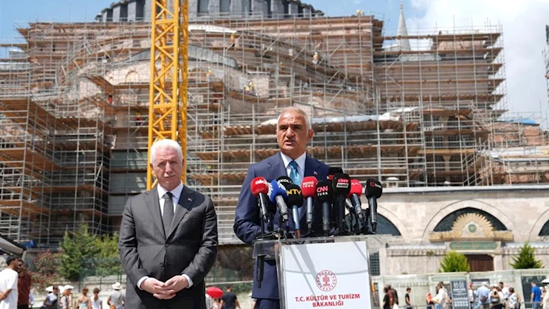 İncelemelerinin ardından basın açıklaması yapan Ersoy, 24 Temmuz 2020’de Cumhurbaşkanı Recep Tayyip Erdoğan’ın kararlı duruşu ve öncülüğüyle yeniden ibadete açılan Ayasofya’nın bu yıl 5. yıl dönümünü geride bıraktığını hatırlattı.