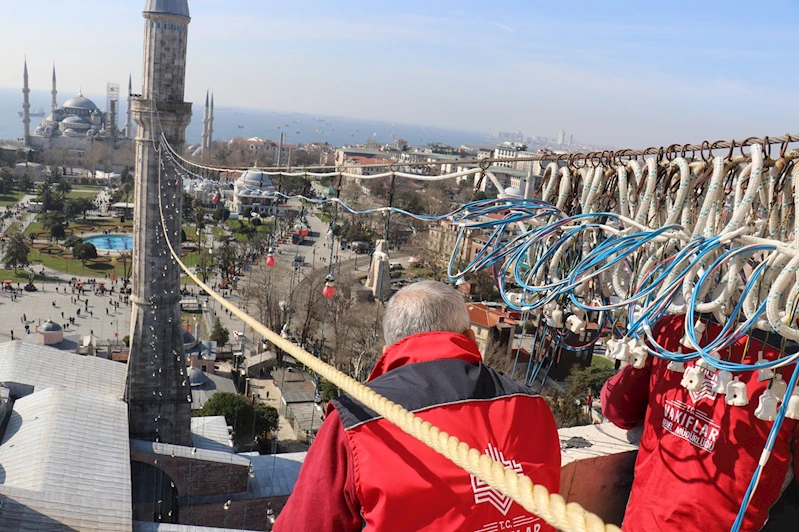 Bakımı yapılarak tekrardan minarelere asılan mahya, bu akşam "La İlahe İllallah" lafzı ile yeniden aydınlanacak.