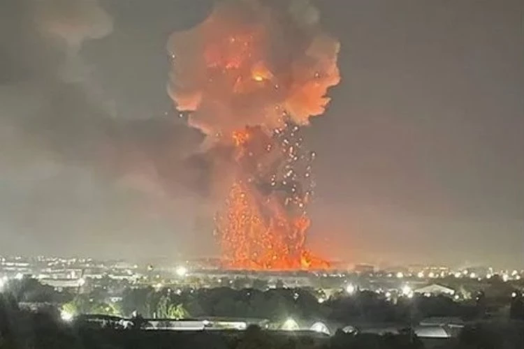 Sosyal medyada dolaşan videolarda ise gece gökyüzüne yükselen bir alev ve duman sütunu görülüyor.