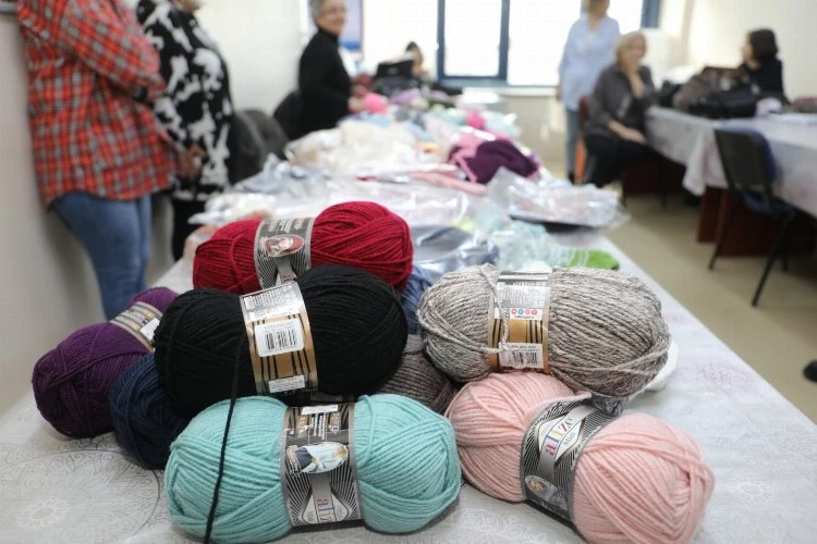 İZMEK’teki kadın üreticiler, yapacakları el emeği ürünlerin malzemesini kendileri alarak deprem bölgesindeki vatandaşlara atkı, bere gibi kışlık ürünler üretiyorlar. Çalışmaları kısa sürede tamamlayacak kursiyerler, yaptıkları ürünleri deprem bölgesine gönderecek.
