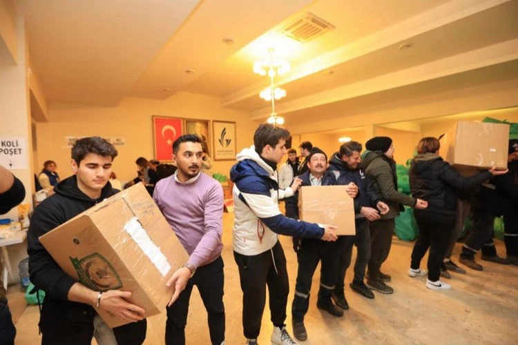 İzmir'de Güzelbahçe Kaymakamlığı ve Güzelbahçe Belediyesi’nin yaptığı çağrıyla vatandaşların topladığı yardım malzemeleri,1 tır ve2 kamyona yüklenerek yola çıktı.