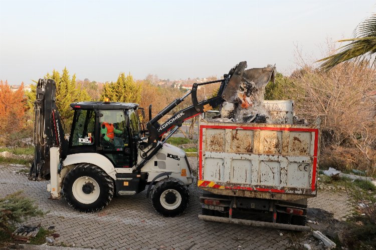 İzmir'de Narlıdere Belediyesi ekipleri, moloz, çöp ve bahçe atığı temizleme çalışmalarına aralıksız devam ederken, son olarak Huzur Mahallesinde daha önce restoran olarak kullanılan alanda temizlik çalışması gerçekleştirdi.