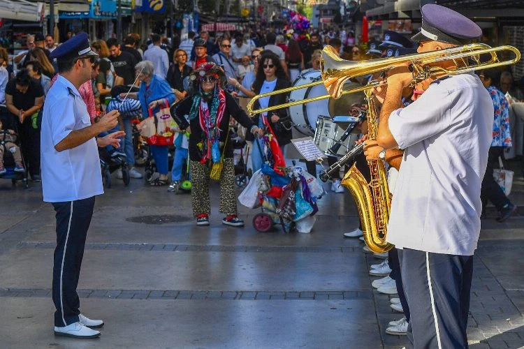 İZMİR (İGFA) - İzmir Büyükşehir Belediyesi, Türkiye Cumhuriyeti’nin 100.yıl coşkusunu sokak sokak kentin dört bir yanına yaymaya devam ediyor. 100. Yıl kutlamaları kapsamında İzmir Büyükşehir Belediyesi Bandosu sokaklarda “Cumhuriyet Konserleri” vermeye başladı. Caz müzikten milli marşlara kadar çok sayıda eseri seslendiren bando ekibi İzmirlilerden büyük ilgi gördü. İzmirliler, alkışlarla ve danslarla bandoya eşlik etti. İzmir Büyükşehir Belediyesi Bandosu, vapur iskelelerinden metro duraklarına, ilçe ve kent meydanlarından semt pazarlarına, Saat Kulesi’nden önünden Kemeraltı’na 30’un üzerinde konserle coşkuyu kente yayacak.
