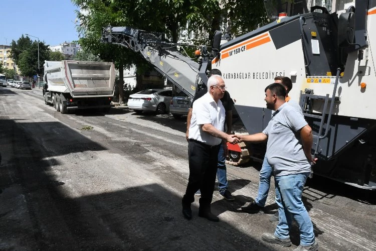 İzmir'de tarihi sıcaklıkların yaşandığı bugünlerde Karabağlar Belediyesi Fen İşleri Müdürlüğü ekipleri asfaltlama çalışmalarını aralıksız sürdürüyor.   Karabağlar Belediye Başkanı Muhittin Selvitopu, Bahçelievler Mahallesi 494 Sokak'taki çalışmaları yerinde denetleyerek, yakıcı güneş altında ter döken ekiplere kolaylıklar diledi. Emekleri ve döktükleri alınterleri için çalışanlara teşekkür eden Başkan Selvitopu, “Karabağlar'a hizmet etmek için önemli bir görev yürütüyorsunuz. Hepinize ayrı ayrı teşekkür ediyorum” dedi. Bahçelievler Mahalle Muhtarı Mehmet Kösen'in eşlik ettiği incelemede Başkan Selvitopu, bölgede ikamet eden ve işyerleri bulunan vatandaşlarla sohbet etti. Vatandaşlar ve esnafın taleplerini dikkatle dinleyen Başkan Selvitopu, “Tüm gücümüzle sahada olmaya gayret ediyoruz. Karabağlar'da yaşayan 500 bin insanımıza eşit hizmet götürmek için çalışmaya devam edeceğiz” dedi. Başkan Selvitopu, asfaltlama çalışmalarının belirlenen programa göre farklı mahallelerde devam edeceğini vurguladı.