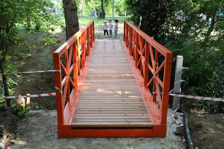İzmit Belediyesi atölyelerinde ürettiği köprüyü Cephanelik Mesire Alanı’na yerleştirdi.