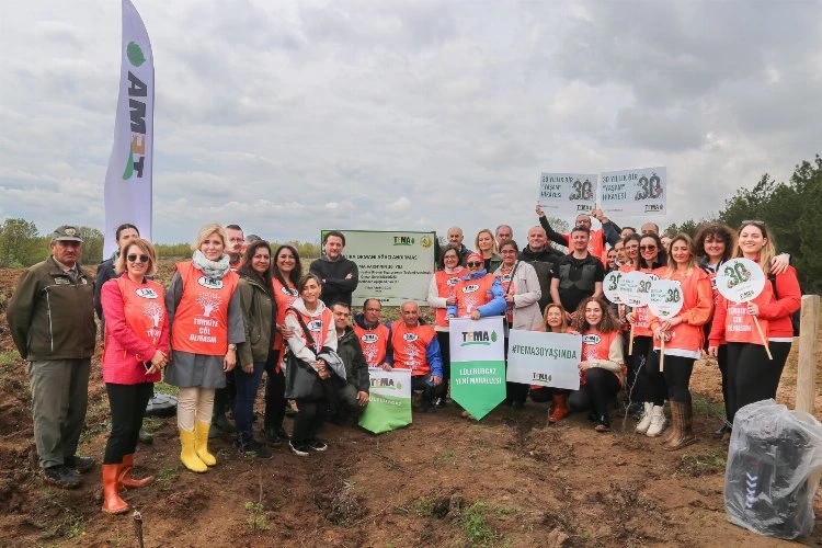 TEMA Vakfı’nın 30’uncu yıl gecesinin sunuculuğunu gönüllü olarak üstlenen Seda Öğretir ve Yiğit Özşener’in de katılımıyla, 7 hatıra ormanından biri olan ve Kırklareli ili Lüleburgaz ilçesi, Celaliye köyü sınırları içerisinde yer alan ormana ziyaret gerçekleştirildi. Etkinliğe İstanbul Orman Bölge Müdürlüğü Ağaçlandırma Şube Müdürü Talip Kavlak ve Kırklareli Orman İşletme Müdürü İsmail Karakaya, TEMA Vakfı Yönetim Kurulu Başkanı Deniz Ataç, Genel Müdürü Başak Yalvaç Özçağdaş ile Vakıf gönüllüleri ve Genel Merkez çalışanları katıldı. Tabela açılışının ardından fidan dikim etkinliğine geçildi ve temsili fidanlar toprakla buluşturuldu.