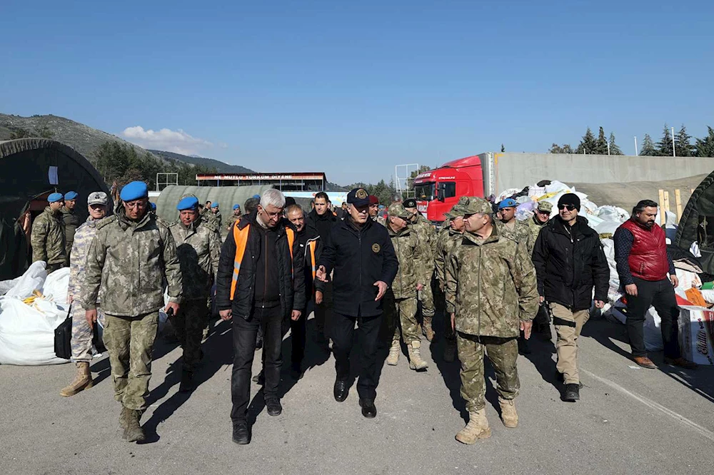 Ardından Millî Savunma Bakanlığı bünyesinde kurulan Afet Acil Durum Kriz Masası ile gelen taleplere yanıt verilirken, bölge arama kurtarma ekiplerinin ulaştırılması Deprem için 'hava yardım koridoru' başlatıldı. Bununla birlikte TSK tarafından depremin üzerine harcanan sıcak yemek, kumanya ile ekmek dağıtıldı. Ayrıca görüşme ortamları sahra mutfak uygulamalarına başlandı. Bunlarla birlikte seyyar tuvalet, seyyar banyo da depremden etkilenmesi üzerine sevk edildi. Öte yandan TSK, Hatay'a gelen yardımların daha hızlı depremzedelere ulaştırılması için lojistik destek organizasyonu kurdu. Serinyol kışlasında kurulan lojistik operasyonlarında bölge genelinde yardımlar yürütüyor. Daha sonra yardımlar AFAD iletişiminde askeri araçlarla ihtiyaç duyduğu yere hızla sevk ediliyor. Millî Savunma Bakanı Hulusi Akar'ın yanında Genelkurmay Başkanı Orgeneral Yaşar Güler ve Kara Kuvvetleri Komutanı Orgeneral Musa Avsever ile lojistik destek üretiminde incelemelerde bulundu. Çalışmalara ilişkin bilgi alan Bakan Akar, talimatları verdi.