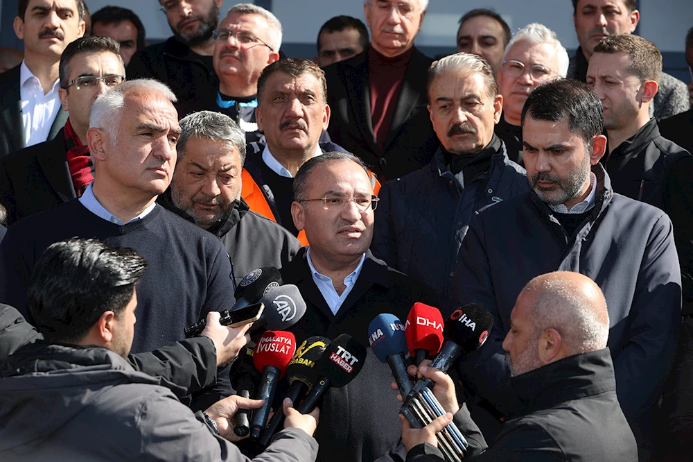 Adalet Bakanı Bekir Bozdağ, İçişleri Bakanı Süleyman Soylu, Çevre, Şehircilik ve İklim Değişikliği Bakanı Murat Kurum, Kültür ve Turizm Bakanı Mehmet Nuri Ersoy, Malatya Afet Koordinasyon Merkezi'nde değerlendirme toplantısının ardından açıklamalarda bulundu. Adalet Bakanı Bekir Bozdağ'da Malatya ve diğer illerde yaşanan deprem felaketinde kayıplara Allah'tan rahmet yakınlarına da başsağlığı nimetlerini ileterek, 'Bakanlarımız ile burada yapılan incelemeler gerekli değerlendirmeleri gözlemleyenler. yönetimi etkin bir şekilde yapılmaktadır' dedi.