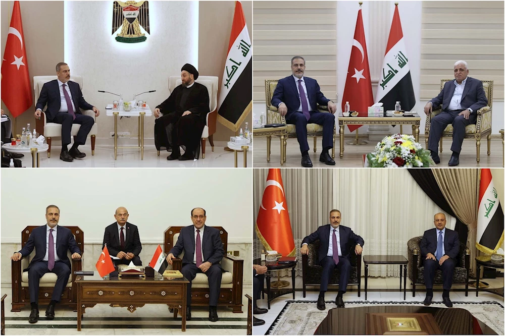 Dışişleri Bakanı Hakan Fidan, Bağdat'taki temasları kapsamında Irak'taki Ulusal Hikmet Akımı lideri Ammar el-Hekim, eski Başbakan ve Kanun Devleti Koalisyonu lideri Nuri el-Maliki, Haşdi Şabi Komisyonu Başkanı Falih el-Feyyad ve Savunma Bakanı Sabit Muhammed Al Abbasi ile bir araya geldi.