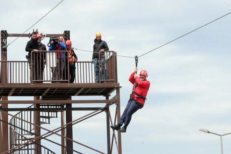 Tesisteki vatandaşlarla sohbet eden Varank, görevlilerden parkurlar hakkında bilgi aldıktan sonra kaskını takarak zipline kulesine çıktı. Vatandaşların alkışları eşliğinde kendisini hat üzerinde Bursa manzarasına doğru boşluğa bırakan Bakan Varank, keyifli anlar yaşadı. Osmangazi Belediye Başkanı Mustafa Dündar da Bakan Varank’ın zipline deneyimine eşlik etti.