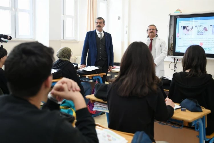 Bakan Tekin, ziyaretin ardından Ercan Akın Fen Lisesi'nde öğrenci ve öğretmenlerle bir araya geldi. Sınıfları gezerek öğrencilerle sohbet eden Bakan Tekin, daha sonra okulun öğretmenler odasında eğitimcilerle bir araya gelerek istişarelerde bulundu.