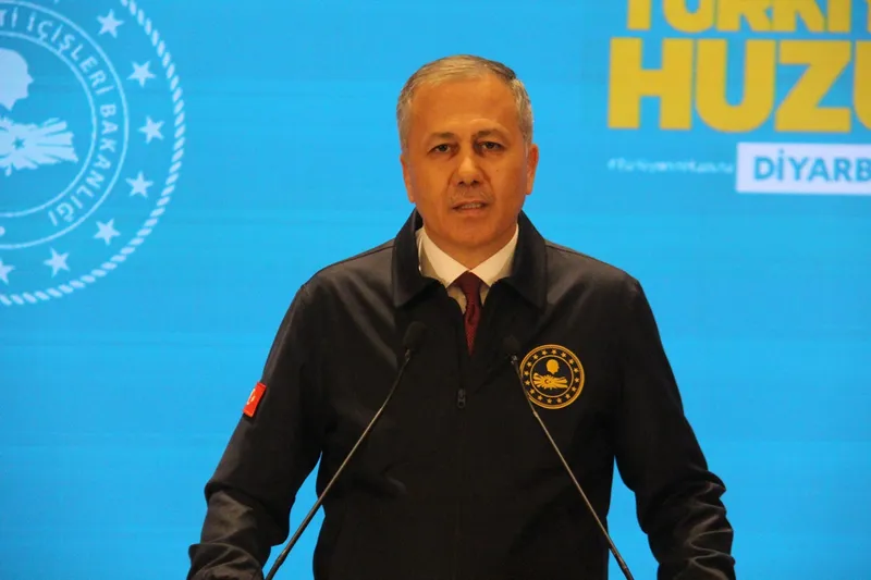 İçişleri Bakanı Ali Yerlikaya, Diyarbakır'da Şanlıurfa Bulvarı üzerinde bulunan bir otelin konferans salonunda düzenlenen Huzur ve Güvenlik Toplantısı'nda konuştu.