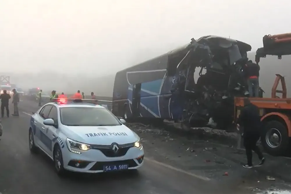 Bu sabah 04.36’da Sakarya Kuzey Marmara Otoyolu Tekeler Mevkiinde meydana gelen zincirleme trafik kazasında 10 kişi olay yerinde hayatını kaybetmiş, 8’i ağır 59 kişi ise yaralanmıştır. Yaralılar 30 ambulans ile hastanelere nakledilmiştir.