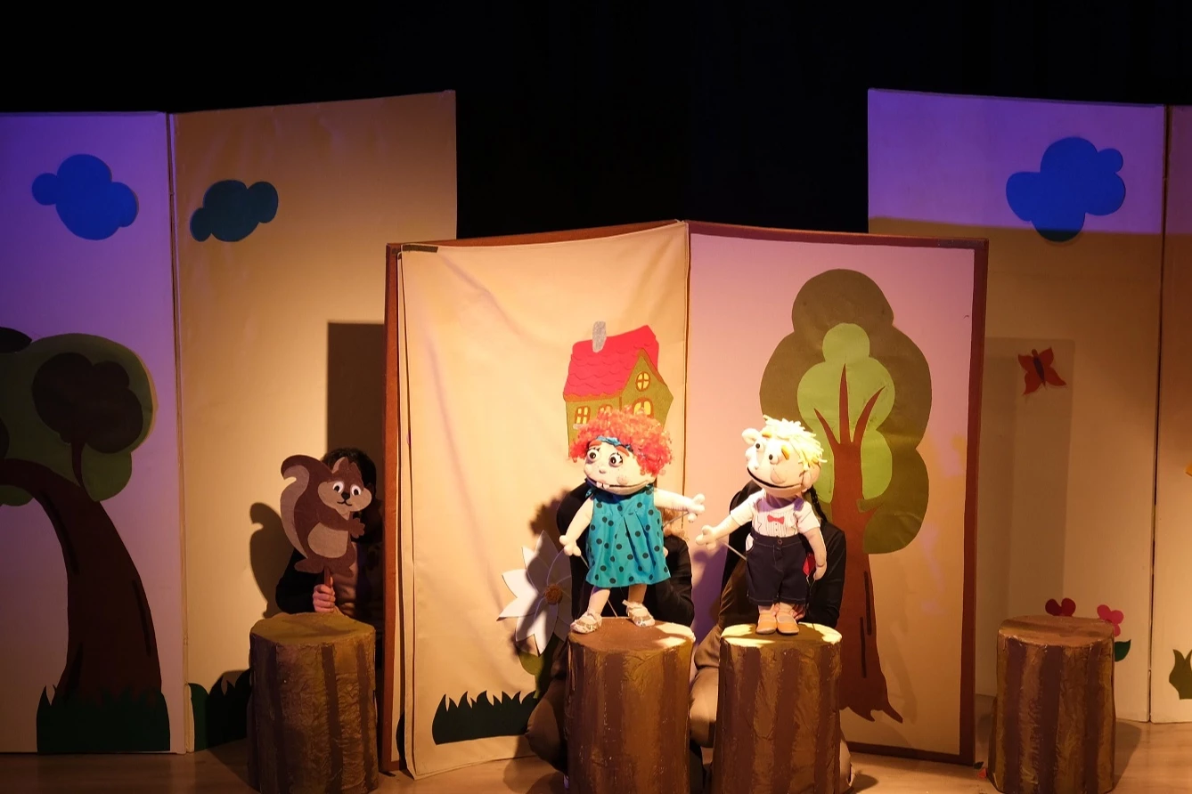 Anlatıcılar masalı anlatmaya, kuklacılar kitaptaki karakterlerin kuklalarını oynatmaya, müzisyenlerse kitabın müziğini çalmaya başlarlar ve bir doğa masalı başlar.