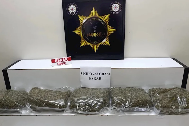 Evde yapılan aramalarda 5 kilogram esrar maddesi ele geçirildi.