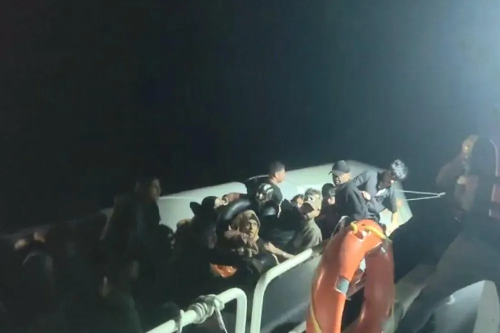 Bölgeye görevlendirilen ekipler, Midilli Adası'na doğru gitmekte olan lastik botu durdurdu. Bota, 19'u çocuk 37 düzensiz göçmen yakalandı.