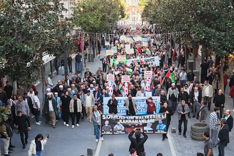 Yürüyüşte, “Sumud’un Balıkesirli Kahramanları” yazılı pankartta Prof. Dr. Haşmet Yazıcı, Dr. Halil Rıfat Çanakçı, Dr. Ergün Akpınar ve öğretmen Abdullah Gündem’in fotoğrafları yer aldı.