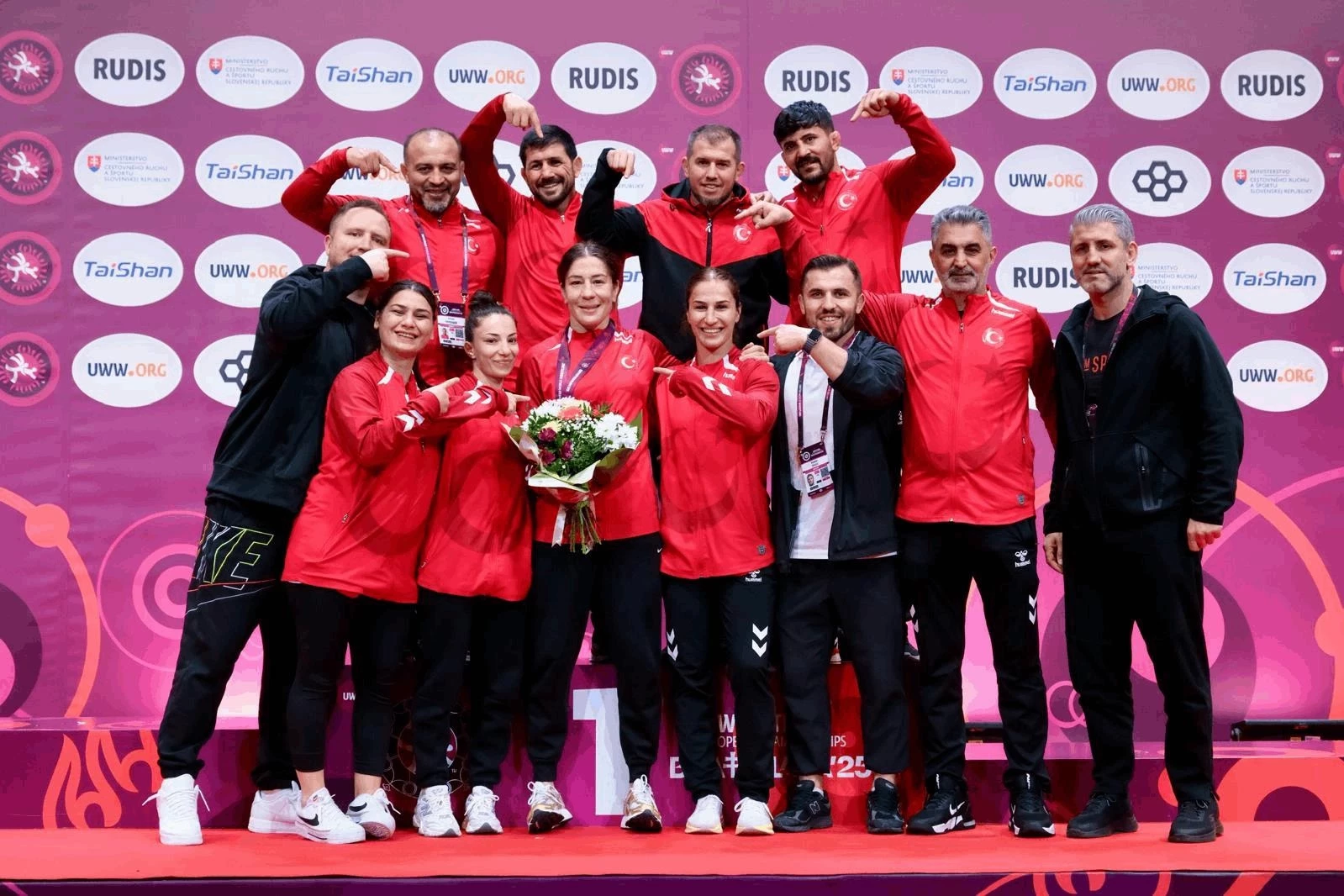 BALIKESİR (İGFA) - Balıkesir’in gururu milli güreşçi Yasemin Adar Yiğit, Slovakya’nın başkenti Bratislava’da düzenlenen Büyükler Avrupa Güreş Şampiyonası’nda 8. kez Avrupa şampiyonu olmak için mindere çıktı. Uluslararası arenada bugüne kadar 7 kez Avrupa şampiyonu olan Yasemin Adar Yiğit kadınlar 76 kilogramda ülkemizi temsil etti. Milli sporcu çeyrek finalde büyük bir baş kilidi atışıyla dört sayı aldı. Ardından İtalyan rakibi Enrica Rinaldi’yi tuş eden Yiğit, 76 kg’da şampiyonluk unvanını korumayı başardı. Yarı final müsabakasında Avusturyalı Martina Kuenz ile karşılaşan Yiğit, Kuenz’i 2-1 yenerek finale çıktı. Finalde Ukraynalı güreşçi Anastasiya Alpyeyeva’ya mağlup olan mili sporcu, şampiyonayı 2. olarak tamamlayıp gümüş madalyanın sahibi oldu.