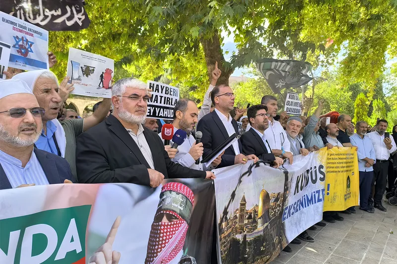 Basın açıklamasını okuyan İsmail Alpaydın, "Yüce Rabbimiz kitabında şöyle buyuruyor: 'Sabretmenize karşılık selam size! Dünya yurdunun sonu (cennet) ne güzeldir!' (Ra’d Suresi, 24. Ayet) Hamdolsun o Allah’a ki, kendi lütfuyla zulmün ateşini söndürdü, düşmanın saldırısını rahmetiyle durdurdu. Sabrı kurtuluşa giden bir yol, direnişi zafere açılan bir kapı kıldı. Salât ve selam, rahmet ve savaş peygamberi olan Hazreti Muhammed’e; barışta yol gösterici, savaşta dağ gibi dimdik duran âline ve ashabına olsun. Dün tarihi bir güne uyandık. 7 Ekim 2023’te Aksa Tufanı ile uyandığımız bir günün ardından tam iki yıl geçti. Bu süreç içerisinde terör çetesi israil okul, hastane, ibadethane demeden kadın, çocuk, yaşlı umursamadan tam bir barbarlık sergiledi. Dünyanın seyirci kaldığı bu vahşete karşı ise bir avuç inanmış ve adanmış bir mücahit topluluğu olan HAMAS, imkansızlıklar içerisinde destansı bir mücadeleyle direndi, en değerlilerini birer birer kurban verdi. Gazze şehri yok edildi ve Filistin halkı çok ağır bedeller ödedi. Gelinen noktada ise yapılan bu anlaşmayla HAMAS’ın bölgesel ve uluslararası düzeyde siyasi bir aktör olarak varlığı tanınmış oldu. Amerikanın ve Batının desteğini alan ve her türlü teknolojiye sahip olan kibir abidesi israil amacına ulaşamadı ve girdiği bataklıktan kurtulmak için anlaşmayı kabul etmek zorunda kaldı. Şüphesiz bu HAMAS’ın apaçık bir zaferi ve israilin büyük bir hezimetidir. Sabrı, sebatı, şehadeti, Allah için direnmeyi, O'nun uğruna mücadele etmeyi idrak edemeyenler ne sahadaki ne de masadaki zaferi anlayabilirler." şeklinde konuştu.