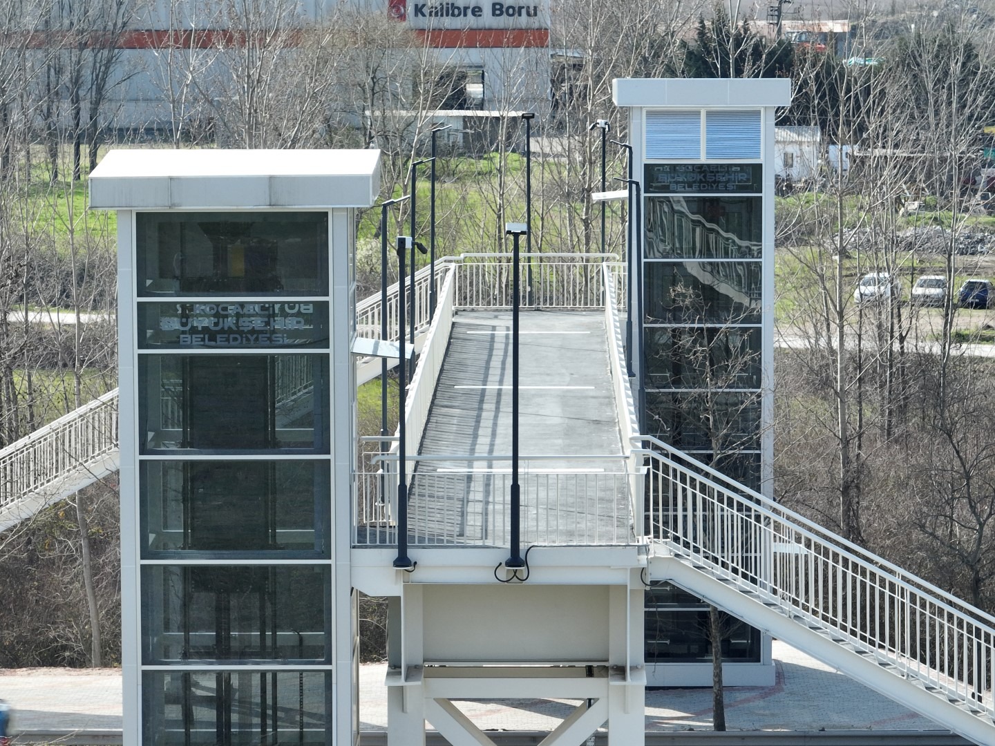 Kocaeli Büyükşehir Belediyesi, Başiskele D-130 Karayolu Yeni Gölcük Yolu üzerindeki Kocaeli İl Emniyet Müdürlüğü hizmet binasına ulaşımı sağlayacak yaya üstgeçidi ve toplu taşıma araçlarının durup kalkabileceği durak cebi yapımını tamamladı. Hizmete giren yaya üst geçidi 44 metre uzunlukta 3 metre genişlikte çelik konstrüksiyon olarak yapıldı. 2 adet asansörü olan çelik konstrüksiyon yaya üstgeçidi ve durak cebi ile vatandaşların yeni emniyet müdürlüğüne ulaşımı kolaylaştırılmış oldu. Başkan Büyükakın, İl Emniyet Müdürlüğü üst geçidini inceledi. Başkan Büyükakın’a Başiskele Belediye Başkanı Yasin Özlü, AK Parti Başiskele İlçe Başkanı Mustafa Koral, Kocaeli Büyükşehir Belediyesi Genel Sekreter Yardımcısı Gökmen Mengüç eşlik etti.