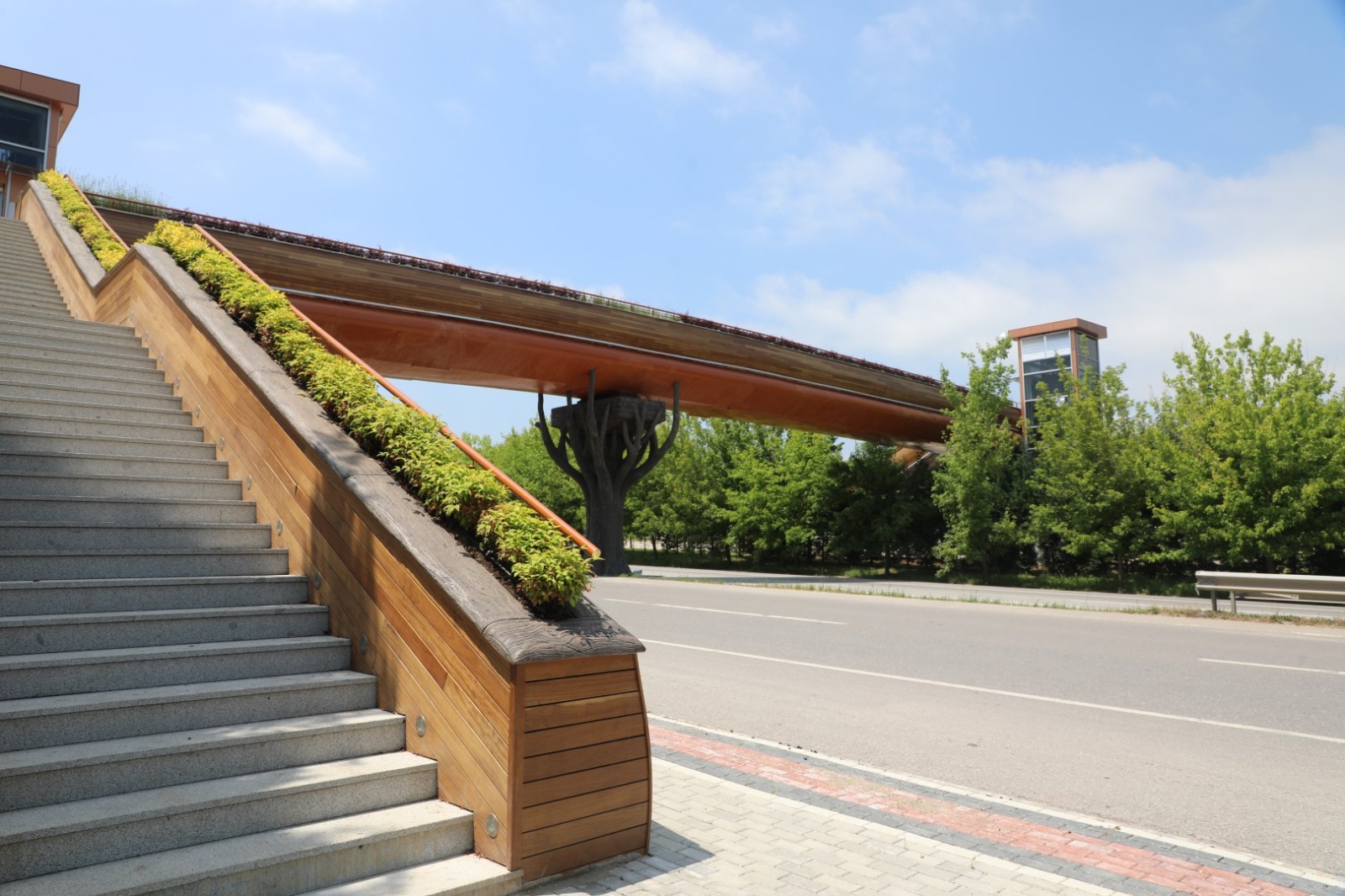 Büyükşehir, Avrupa’nın en büyük doğal yaşam parkı Ormanya’ya da yayaların güvenli şekilde ulaşımını sağlayacak doğa temalı üst geçit inşa etti. Dört mevsim doğaseverleri ağırlayan Ormanya’ya yapılan üst geçidin ayakları ağaç şeklinde, gövdesi ise çiçek uygulamalarıyla kaplandı. 45 metre uzunluğunda ve 4 metre genişliğinde olan üst geçit, D-100 Karayolu üzerinden Ormanya’ya güvenli ulaşımı sağlarken, tasarımıyla da model ve örnek oluyor. Başkan Büyükakın, Ormanya üst geçidini inceledi. Başkan Büyükakın’a Kartepe Belediye Başkanı Mustafa Kocaman ve AK Parti Kartepe İlçe Başkanı Sadık Yılmaz da eşlik etti.