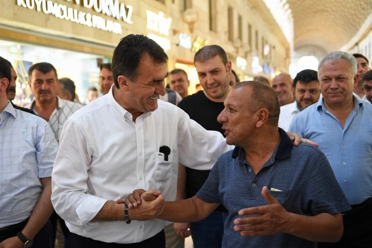 BURSA (İGFA) - Her zaman iç içe olduğu esnafın talep ve önerilerini yerinde dinlemeyi tercih eden Osmangazi Belediye Başkanı Mustafa Dündar, son olarak Tarihi Çarşı ve Hanlar Bölgesi’nde esnaf ve alışveriş yapan vatandaşlarla bir araya geldi.