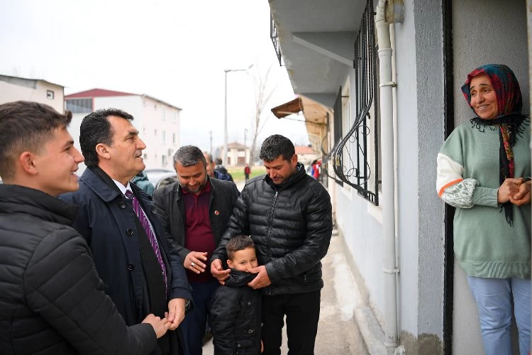 Bursa'da Osmangazi Belediye Başkanı Mustafa Dündar, Kahramanmaraş merkezli depremlerin ardından ilçeye yerleşen depremzede aileleri ziyaret etti.