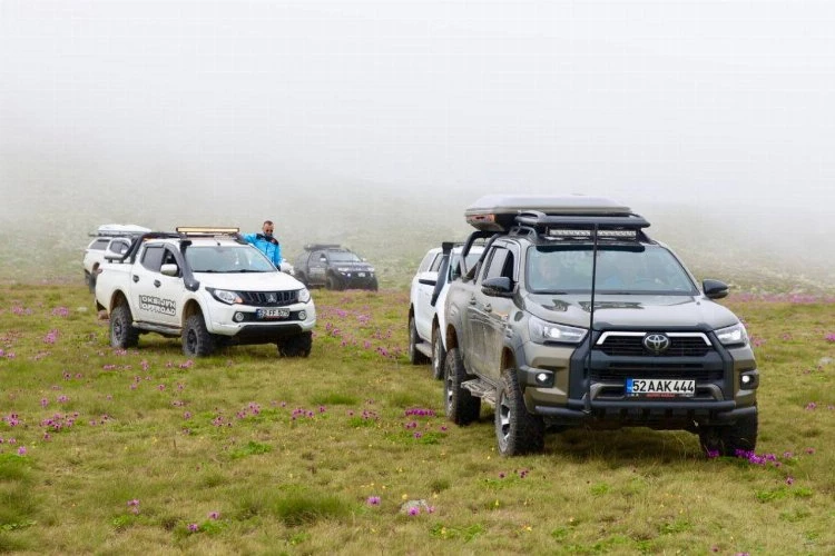 Araçlar ile birlikte 2 bin 800 rakıma tırmanan katılımcılar Kabadüz ilçesi Çambaşı Yaylası’nın doğal güzellikleri eşliğinde Armutalan Obası ve Ablak Kayası’ndan geçerek zirveye ulaştı.