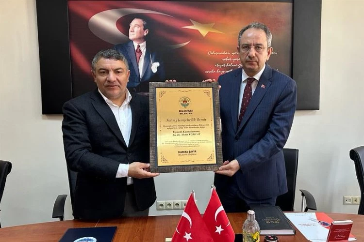 Kocaeli'de Dilovası Belediye Başkanı Hamza Şayir, göreve geldiği günden bu yana Dilovası’nın gelişimine büyük katkılar sunan Dilovası Kaymakamı Dr. Metin Kubilay’a Fahri Hemşerilik beratı takdim etti.