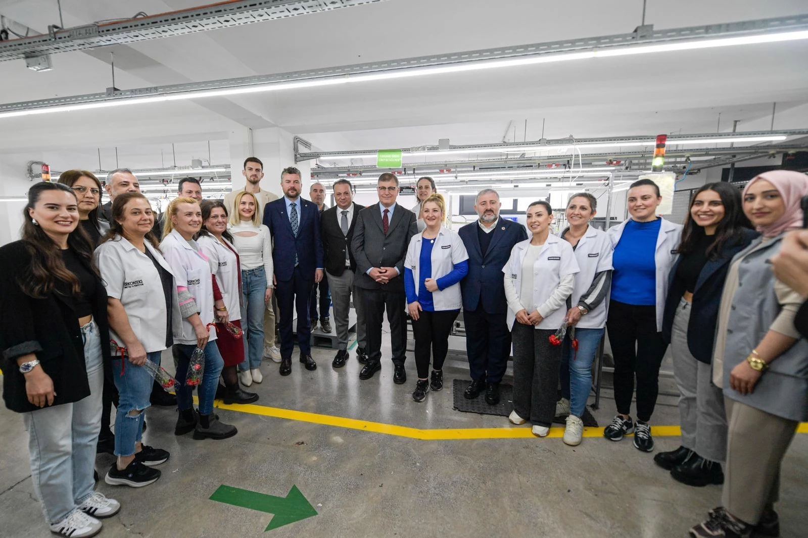 İzmir Büyükşehir Belediye Başkanı Dr. Cemil Tugay, 8 Mart Dünya Emekçi Kadınlar Günü öncesi Buca Ege Organize Sanayi Bölgesi’nde (BEGOS) çalışanlarının yüzde 85’i kadınlardan oluşan bir fabrikayı ziyaret etti. Kadın işçilerle sohbet eden Başkan Dr. Cemil Tugay, “Kadınlar iş hayatına, sosyal yaşantıya katılmadan bir ülke kalkınamaz ve güçlenemez. Sizler bizim için çok değerlisiniz, talep ettiğiniz her türlü konu için çalışacağız. Sorunları beraber çözeceğiz” dedi.