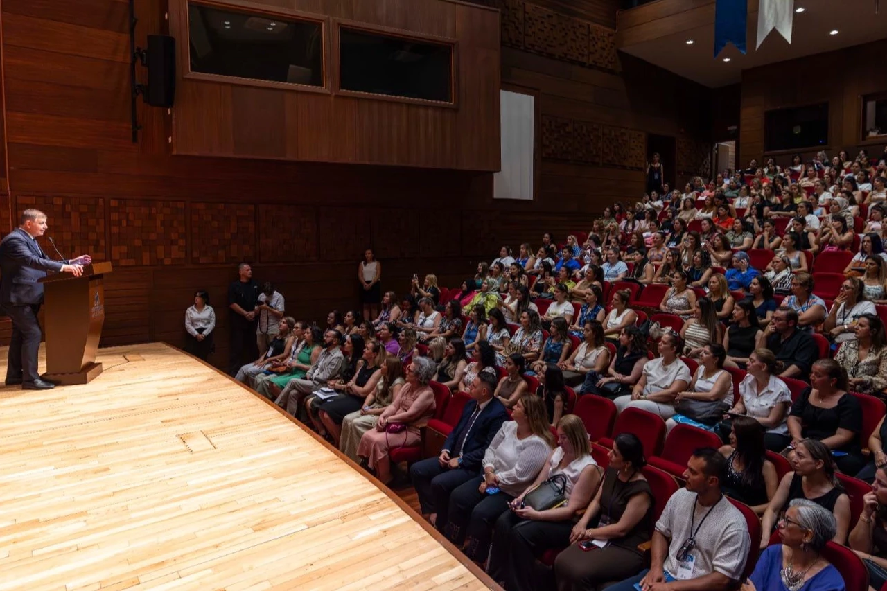 İzmir Büyükşehir Belediye Başkanı Dr. Cemil Tugay, “Eşit Bir Başlangıç, Parlak Bir Gelecek” başlıklı 2025-2026 Yuvamız İzmir Çocuk Etkinlik Merkezleri Hizmet İçi Eğitim Semineri’nin açılışına katıldı. Açılış töreninde İZELMAN AŞ Yönetim Kurulu Başkanı Aybala Yentürk, İZELMAN Genel Müdürü Yılmaz Mede, Genel Müdür Yardımcısı Merve Doğan Gürsel, Yuvamız İzmir Çocuk Etkinlik Merkezleri Müdürü Eda Kaygusuz de yer aldı.