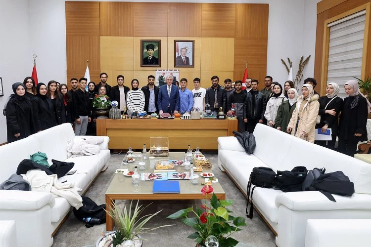 SAKARYA (İGFA) - Sakarya Büyükşehir Belediye Başkanı Ekrem Yüce, Sakarya Üniversitesi Siyaset Bilimi ve Kamu Yönetimi öğrencilerini makamında ağırladı. Kasım ayı Olağan Meclis Toplantısı’nı takip eden öğrenciler, daha sonra Sakarya için tarihi bir nitelik taşıyan ‘raylı sistem’ projesinin protokol törenine tanıklık ettiler. Başkan Yüce’den Sakarya’ya dair bilgiler alan öğrenciler, Başkan Yüce’ye teşekkür ederek ayrıldılar.
