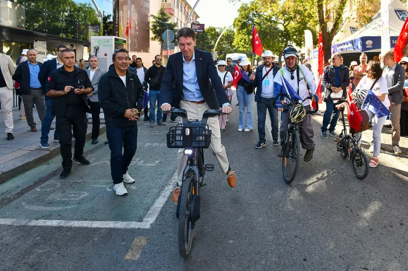 “Bugün ise Aşkabat Caddesi’ni araç trafiğine kapatıp caddeleri insanlara geri vererek kutluyoruz. Her yıl Avrupa Hareketlilik Haftası kentlerin; yaya alanları oluşturarak, bisiklet paylaşım sistemleri başlatarak ve okullara güvenli yollar açarak sokaklarını geri kazanmalarını sağlıyor. Yüzlerce şehir arabasız günlere ve farkındalık etkinliklerine katılıyor. Mesaj her yerde aynı, ‘Hareketlilik herkes için erişebilir ve adil olmalı.’ Hareketlilik konusunda ulaşım konusunda sergiledikleri liderlik için Belediye Başkanı Sayın Yavaş’a ve Ankara Büyükşehir Belediyesi'ne teşekkür ederim. Büyükşehir Belediyesi, insanların günlük yaşamlarında nasıl hareket ettiklerini düşünerek cesur adımlar attı. Birlikte Ankara’nın sürdürülebilir kentsel hareketlilik planı üzerinde çalıştık. Ankara bazı öncü projelere yol açıyor ve uyguluyor. Avrupa Birliği Ankara'ya ve tüm Türkiye’deki belediyelere destek olmaktan gurur duyuyor.”
