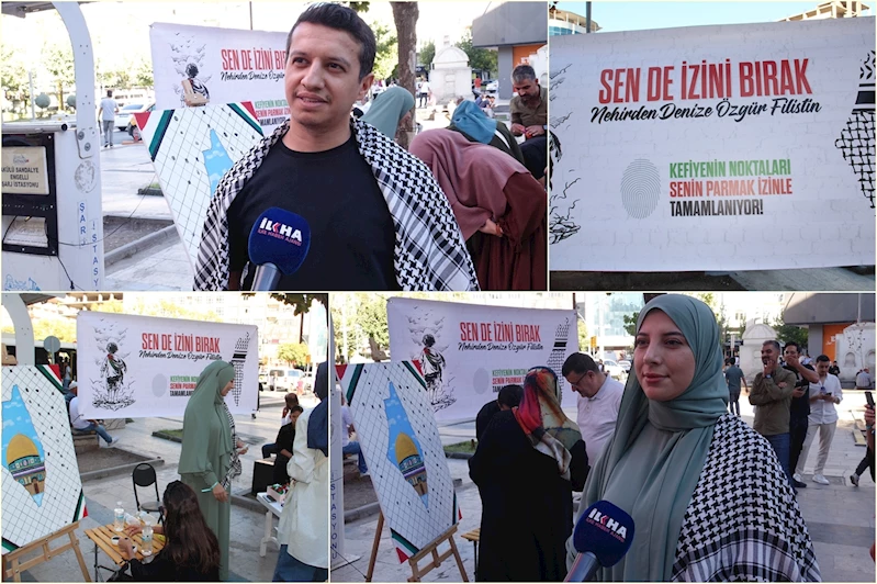 Bugün Gazze'yi insanlara hatırlatmak istediği belirten Gürceğiz, "Acı bize değmedikçe umursamıyoruz. Biz istiyoruz ki Gazze’nin çığlığını herkes duysun. Sadece Gazze değil, zulüm gören her yerin savunucusu olmalıyız. İnsanlar sessiz kalmasın, ses çıkarsınlar. Bugün oluşturduğumuz kefiye tablosu da bu nedenle çok anlamlı. Noktalarını parmak izleriyle tamamlıyoruz. Her parmak izi, adaletin ve vicdanın sesi oluyor. İnsanlar, tarihe kendi izlerini bırakıyorlar." şeklinde konuştu.
