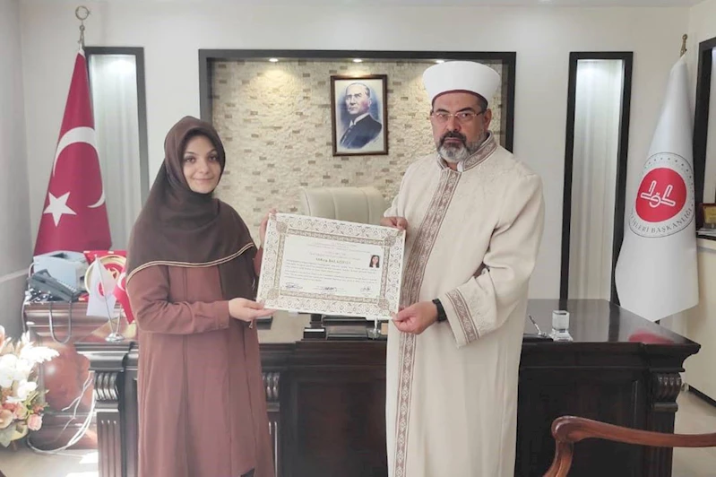 Törenin sonunda Müftü Durmuş, Züleyha’ya ihtida belgesi ve Diyanet İşleri Başkanlığı yayınlarından Kur'an'ı Kerim hediye etti.