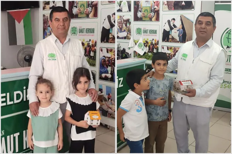 Küçük yaşlarına rağmen ümmet bilincini kuşanan çocuklar, kumbaralarını Umut Kervanı yetkililerine teslim ederek Gazze'deki kardeşlerine umut oldular.