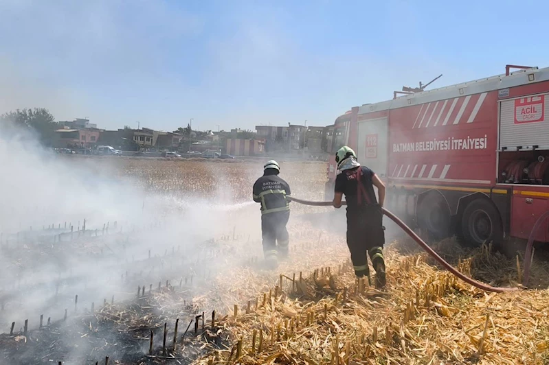 Batman Merkez Huzur Mahallesi 562. Sokak'ta bulunan biçilmiş bir mısır tarlasında, henüz bilinmeyen bir nedenle yangın çıktı.