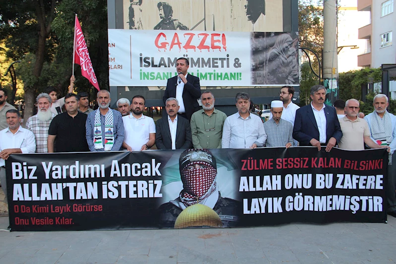 "Gazze'deki kardeşlerimiz, bizzat şehit İsmail Heniyye, canımızla ve malımızla onlara destek olamazsak da kendilerini unutmamamızı istedi. Şehirlerde, meydanlarda sesimizi kendileri için yükseltmemizi istedi. Bugün bizler bu vasiyete ve Gazze halkına sahip çıkıyoruz."