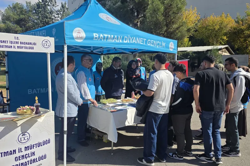 Batman İl Müftüsü Ahmet Durmuş ile Müftü Yardımcısı Halime Esra Özdemir, tanıtım standını ziyaret ederek çalışmaları yerinde inceledi ve üniversiteli gençlerle sohbet etti.