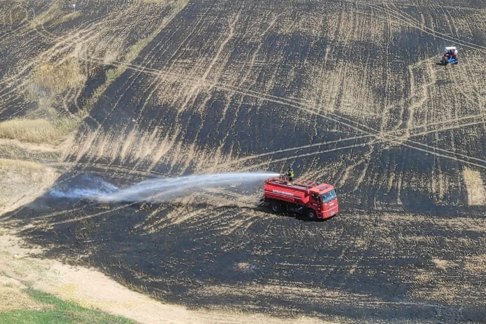 Kısa sürede söndürülen yangın nedeniyle yaklaşık 30 dönüm ekili arpanın zarar gördüğü belirtildi.