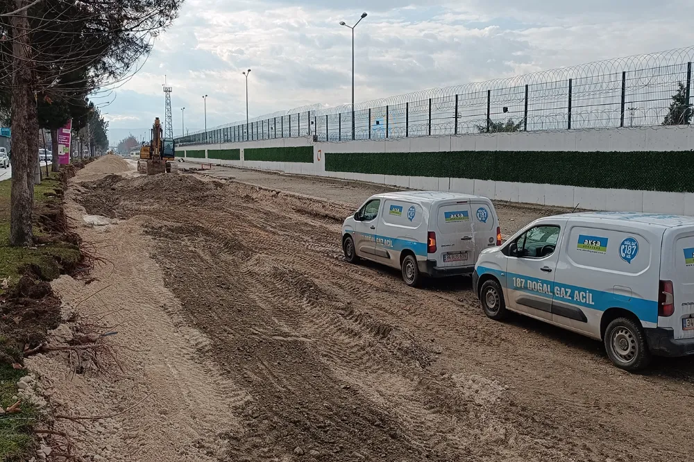 Bölgeye gaz akışını sağlayan vanayı kapatan doğal gaz ekibi, sızıntıyı gidermek için çalışma başlattı.